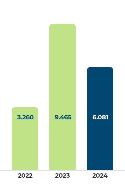 Além disso, a Tatos Crédito gerou um volume financeiro significativo com essas solicitações. Em 2022, o volume de crédito simulado foi de R$ 972,9 milhões, crescendo para mais de R$ 2,7 bilhões em 2023 e atingindo R$ 2,94 bilhões em 2024. Esses resultados destacam nossa relevância e influência junto às maiores instituições financeiras do país, tornando sua solicitação de crédito através da Tatos uma operação de destaque, e não apenas mais uma cotação no mercado.